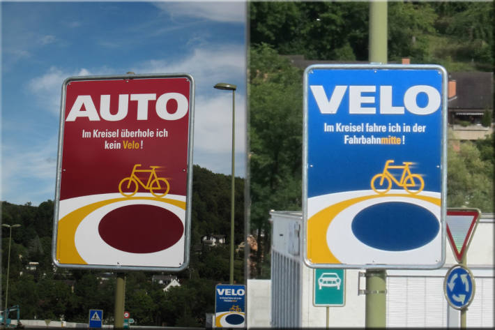 Auf dem Velo im Kreisel in der Mitte fahren Velos dürfen und sollen im Kreisel in der Mitte fahren. Darauf machen derzeit Plakate und Strassen-Aktionen gemeinsam mit der örtlichen Polizei aufmerksam.... 04.09.2018 | 10:03