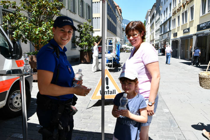 Chur GR - Stadtpolizei verteilt Trinkwasser Die Stadtpolizei Chur hat auf die hohen Temperaturen reagiert und in der Churer Innenstadt, bei Verkehrskontrollen sowie auf verschiedenen Parkplätzen auf... 18.07.2018 | 16:26
