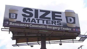 Nach dem Motto "Es kommt auf die Grösse an" wirbt der kalifornische Schönheitschirurg Brian Eichenberg für Brustvergrösserungen - und macht sich zumindest bei der weiblichen Bevölkerung in Murrieta damit nicht gerade beliebt. In Anspielung auf die Körbchengrössen von Büstenhaltern stellt Eichenberg auf seinem Werbeplakat einen kleinen Kaffeebecher mit einem "B" darauf einem grossen mit einem "D" gegenüber.