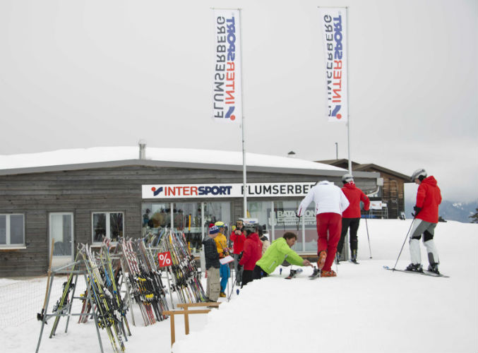 Der Intersport Flumserberg auf Prodalp bietet einen Skitest direkt auf der Piste an. Die Schneerampe vor dem Sportgeschäft unmittelbar neben der Piste bietet ideale Voraussetzungen, um möglichst viele verschiedene Skimodelle zu testen und zu vergleichen.