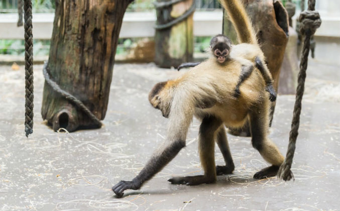 Die Jungen sind noch abhängig von ihren Müttern, obwohl sie schon ziemlich selbstbewusst unterwegs sind und auch schon feste Nahrung zu sich nehmen. Die kleinen Klammeraffen müssen aber noch einiges lernen. Vor allem der Umgang mit den anderen Familienmitgliedern ist nicht immer einfach.