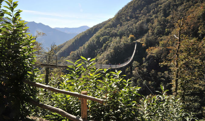 Dank des milden Klimas ist das Tessin ein Wanderparadies zu jeder Jahreszeit. In Monte Carasso, wenige Kilometer von Bellinzona entfernt, beginnt die familienfreundliche Wanderung zur in 2015 neu eingeweihten Ponte Tibetano, die mit 270 Metern längste tibetische Hängebrücke der Schweiz. Die vierstündige Tour führt vorbei an Weingütern, die zur Degustation des exzellenten Tessiner Merlot einladen, bis hinauf in das malerische Dorf Curzútt, welches bereits mit dem Wakkerpreis des Schweizer Heimatschutzes ausgezeichnet ist.