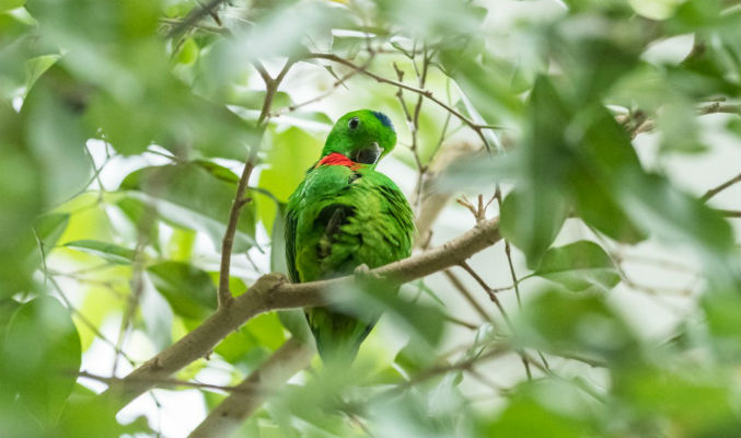 Blaukrönchen gehören zu der Gattung der Fledermauspapageien, die im süd-ostasiatischen Raum weit verbreitet ist. Namensgebend ist die Angewohnheit, sich beim Schlafen wie Fledermäuse mit dem Kopf nach unten "aufzuhängen". Blaukrönchen streifen in der Regel in kleinen Gruppen umher, fast nie sind sie einzeln unterwegs. Geschickt bewegen sie sich im Geäst, um an ihre Nahrung (Nektar, Früchte, Pollen, Samen sowie verschiedene kleine Insekten) zu kommen.
