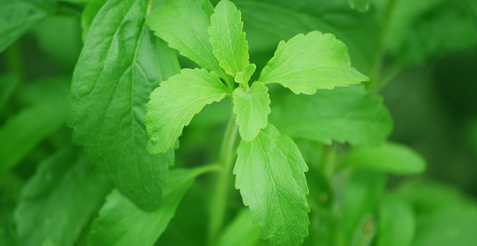 Stevia: Optisch erinnert Stevia an Minze, schmeckt aber extrem süss. Da Stevia jedoch viel stärker als Zucker ist, sollte man es vorsichtig einsetzen.