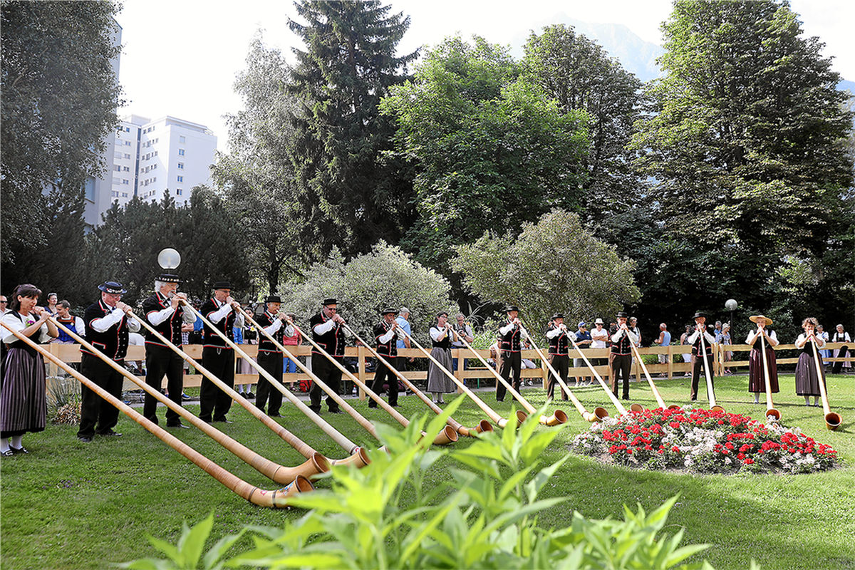 Die Jodlerinnen, Fahnenschwinger und Alphornbläser suchen den Schatten auf, wo immer er zu finden ist. Ein Bad in einem Stadtbrunnen ist sehr beliebt und hilft, den aufgeheizten Körper abzukühlen Das Fest, bei dem heute die Vorträge im Zentrum stehen, lockte das Publikum in Massen an. Abends verwandelt sich Brig in eine einzige Festhütte mit einige zehntausend Jodlern und vor allem Besucher aus dem ganzen Wallis. Die Bierbrauer dürfen sich freuen...