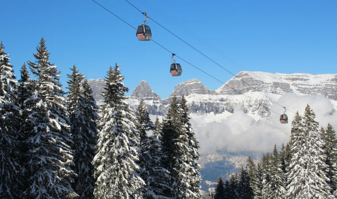 Bild: Gondelbahn Maschgenkamm vor den imposanten Churfirsten im Winterkleid. (Bergbahnen Flumserberg AG)