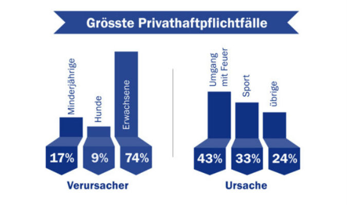 33 Prozent aller Haftpflichtfälle entstanden beim Sport, am meisten beim Skifahren (15%) und Fahrradfahren (8%). Doch auch aus Schlittel-, Kletter- und gar Schiessunfällen entstanden hohe Schadenersatzforderungen.