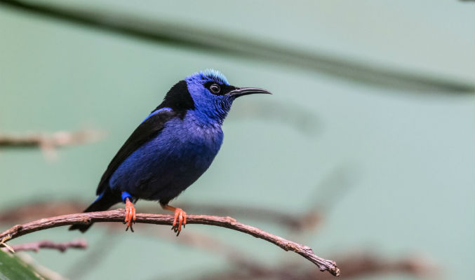 Mutter und Vater des Jungen kann man gut unterscheiden. Im Gegensatz zum sattblauen Männchen, das ein türkisfarbenes Häubchen trägt, ist das Weibchen eher unscheinbar grünlich gefärbt. Zurzeit leben drei Paare im Zoo Basel.