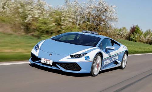 Der Huracán Polizia wird im Dienste der Verkehrspolizei, für Notfalleinsätze und für dringende medizinische Transporte eingesetzt. Das Fahrzeug tritt in den Dienstfarben auf ("Azzurro Medio Polizia"), wobei die weissen Streifen und Schriftzüge dem dynamischen Design des Supersportwagens angepasst wurden.