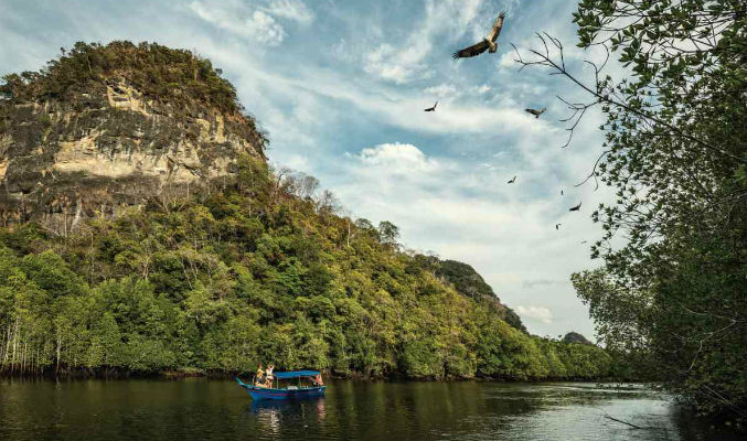 Der Naturforscher im Four Seasons Resort Langkawi, Aidi Abdullah, nimmt Gäste regelmässig auf seine geführten Touren durch den angrenzenden Unesco Geopark mit, der erste in Südostasien. Während der Bootstour erklärt er die vielfältige Pflanzen- und Tierwelt und weist auf Besonderheiten des Kilim Karst Geoforest Park hin. Verspielte Affen, beeindruckende Adler, die über den Flussarmen ihre Kreise ziehen, und dichter Mangrovenwald sind nur einige der Highlights.