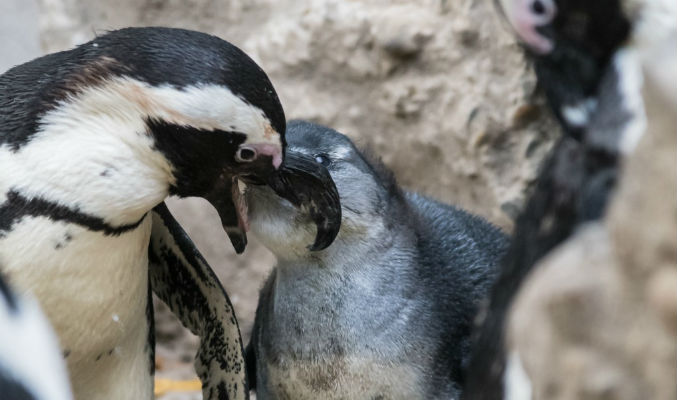 Trotzdem dürfen sich die Besucher im Zoo Basel an Pinguinnachwuchs erfreuen: bei den Brillenpinguinen sind fünf Junge zu sehen. Das erste ist am 24. August geschlüpft, das letzte am 3. Oktober. Noch rund zehn Tage werden die Brillenpinguin-Küken von diesem Jahr bei ihren Eltern sein. Danach werden sie vorübergehend getrennt und hinter den Kulissen vom Tierpflegepersonal betreut. Dort müssen sie selbständig lernen zu fressen. Die meisten Jungen würden sonst ihr Futter einfach weiterhin bei den Eltern erbetteln.