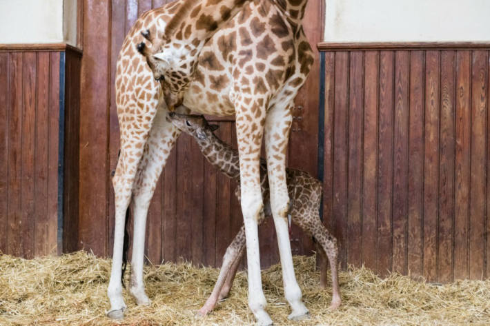 Qendrim war von Anfang an sehr kräftig und stand bereits nach weniger als einer halben Stunde auf den Beinen. Es verging keine Stunde, bis er das erste Mal bei seiner Mutter trank. Am Dienstag machte er den ersten Ausflug nach draussen und lernte die im Dezember geborene Penda kennen.