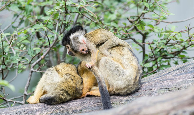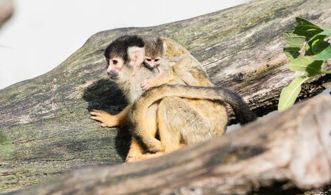 Die Jungen werden etwa sechs Monate bei ihren Müttern bleiben, bevor sie langsam unabhängig werden und ihre Nahrung ganz alleine suchen können, denn Totenkopfäffchen sind hervorragende Jäger, aber das Jagen müssen die Kleinen erst lernen. Zwar stehen viele Früchte auf ihrem Speiseplan, aber auch Insekten, Spinnen, Schnecken und zwischendurch ein kleines Nagetier oder eine Echse sind heiss begehrt.
