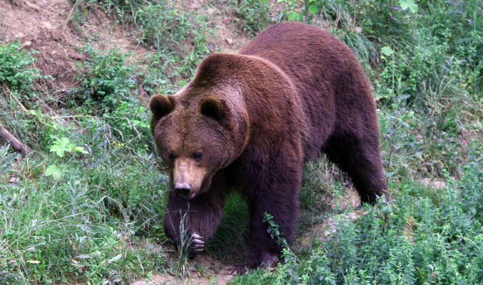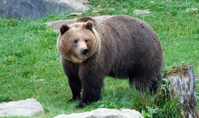 Die erwachsene Bärin geniesst die Ruhe in der Schauanlage und kann von den Besucherinnen und Besuchern beim Baden im Teich und auf der Futtersuche durch die Anlage gut beobachtet werden.