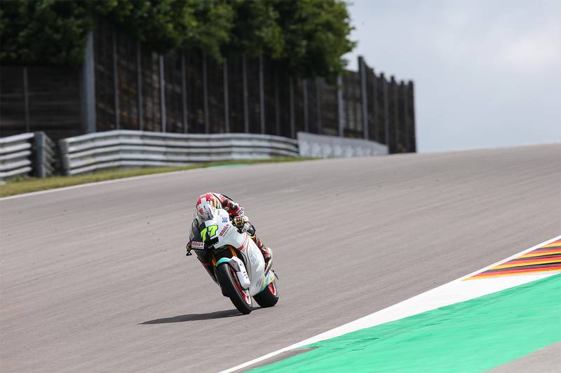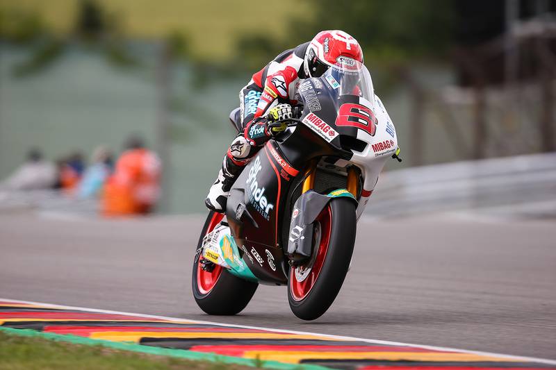 Wie vor einer Woche in Holland, beeinträchtigte wechselhaftes Wetter auch den Auftakt beim Motorrad GP Deutschland. Nach einer trockenen ersten Session am Vormittag, fand das zweite Training nach einem heftigen Regenschauer unter Mischbedingungen statt. Dominique Aegerter startete mit der fünftschnellsten Rundenzeit des ersten Trainings in das Heimspiel seines Teams. Am Nachmittag, auf abtrocknender Strecke, vermochte der 26-Jährige seine Rundenzeit nicht mehr zu verbessern und rutschte daher in der kombinierten Zeitenliste auf Position neun zurück. Teamkollege Tarran Mackenzie hingegen freute sich sein Gefühl mit der Suter MMX2 Rennmaschine weiter verbessern zu können. Doch der junge Schotte sparte auch nicht mit Selbstkritik, da er vor allem Potenzial für Verbesserungen bei sich selbst sieht.