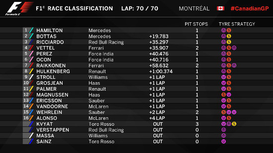 Marcus Ericsson startete auf ultraweichen Reifen und war auf einer Ein-Stopp-Strategie, während Pascal Wehrlein nach dem Heckflügel-Wechsel (Unfall im Qualifying) auf superweichen Reifen aus der Boxengasse ins Rennen gehen musste (2 Boxenstopps). Die Sauber C36-Ferrari werden nun mit der restlichen Fracht von Montreal aus direkt nach Baku geflogen, wo in zwei Wochen der Grand Prix von Aserbaidschan stattfindet.