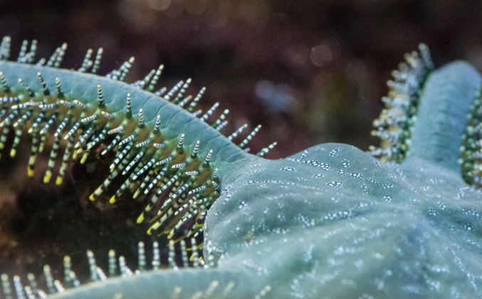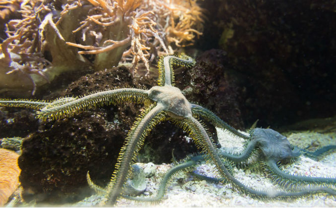 Seesterne und Schlangensterne haben weder ein Vorne noch ein Hinten, weder eine linke noch eine rechte Körperseite; sie sind fünffach symmetrisch! Von aussen ist dies durch die fünf langen Arme ersichtlich, aber auch im Inneren ist alles fünffach vorhanden: In einer zentralen Körperscheibe finden sich ein fünfarmiges Nervensystem, ein fünfteiliger Kiefer, fünf Geschlechtsorgane… und zwei Mal fünf Atmungsorgane!