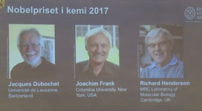 Jacques Dubochet, Joachim Frank und Richard Henderson werden mit dem diesjährigen Nobelpreis für Chemie ausgezeichnet. Das teilte die schwedische Akademie der Wissenschaften am Mittwoch in Stockholm mit.