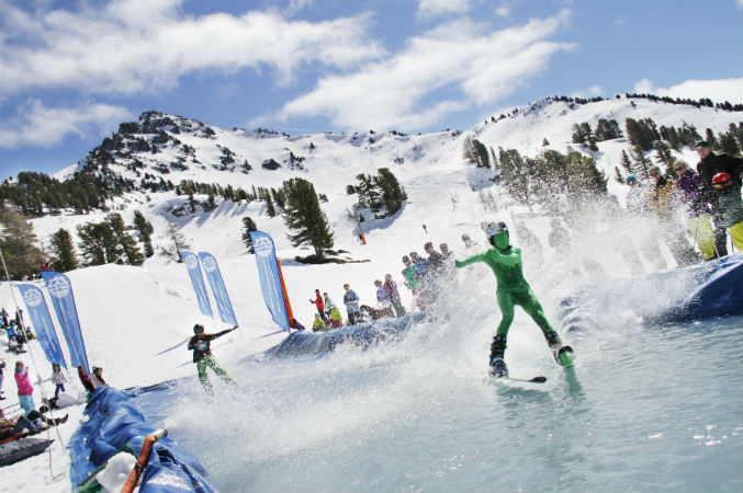 Wer mutig genug ist, macht beim Waterslide-Contest mit und versucht, den Wassergraben auf Skis oder dem Snowboard so stylisch wie möglich zu überqueren. Die besten Tricks, originellsten Verkleidungen und spektakulärsten Stürzen werden mit tollen Preisen belohnt.