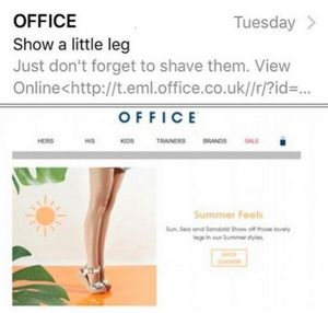 Die britische Schuhkette Office ist bei ihren Kundinnen mit einer Promotion-Mail massiv ins Fettnäppchen gestiegen. Denn darin heisst es frei übersetzt: "Zeigen Sie doch ein wenig Bein. Aber vergessen Sie nicht, diese zu rasieren". Damit hat sich das Unternehmen eine Sexismus-Dabatte empörter Konsumenten eingefangen - Imageschaden inklusive.