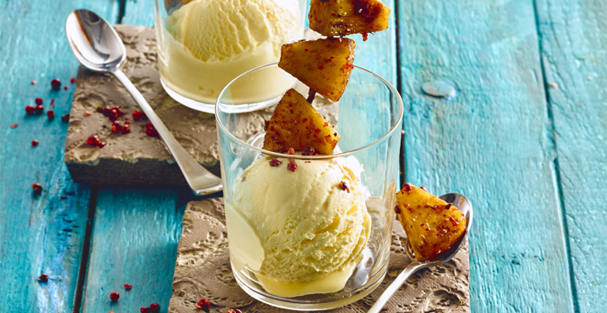 Rezept: Karamellisierte Ananas mit Vanille Eis