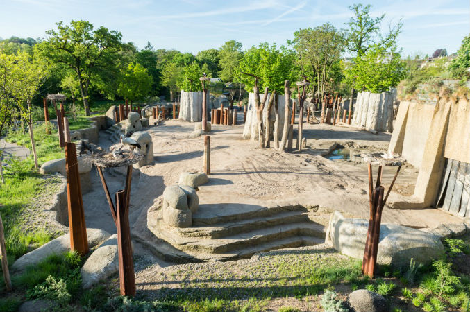 Auf der 2017 eröffneten Anlage "Tembea" dreht sich alles um das Thema Bewegung. Alle Anlagenbewohner wurden wegen ihren zum Thema der Anlage passenden Eigenschaften ausgewählt. Da dürfen die Störche als Vielflieger und Zugvögel natürlich nicht fehlen. Von der vor dem Haus errichteten Beobachtungsplattform aus sind jetzt spektakuläre Einblicke in die Storchennester möglich, denn auf der Aussenanlage der Elefanten wurden Horst-Plätze aufgestellt, auf denen die Störche in luftiger Höhe nisten.