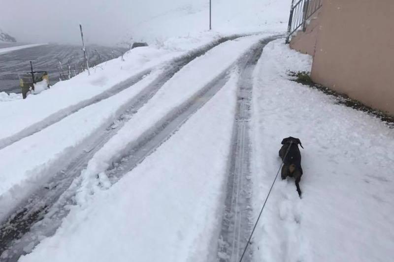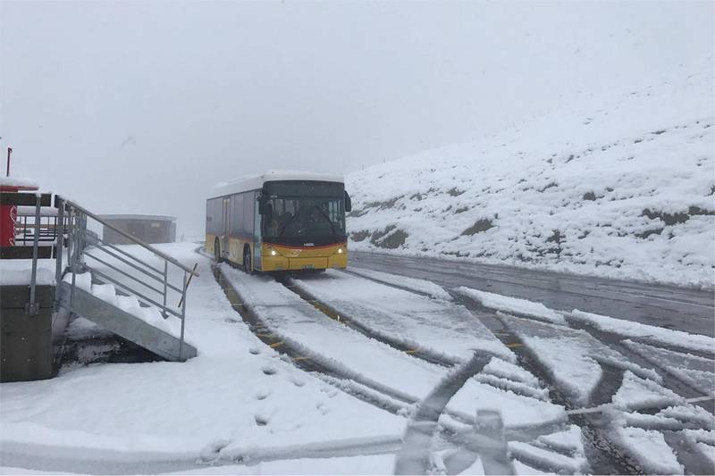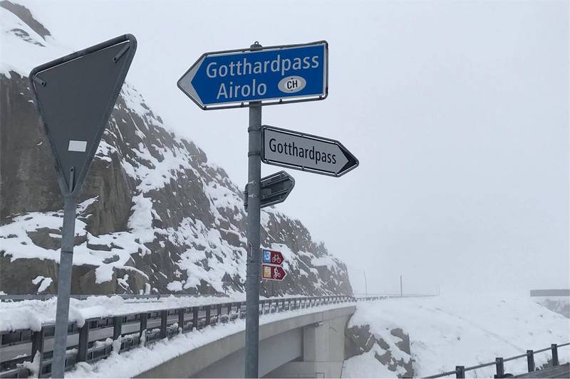 Der Gotthardpass unter Kontrolle des ersten Schnees