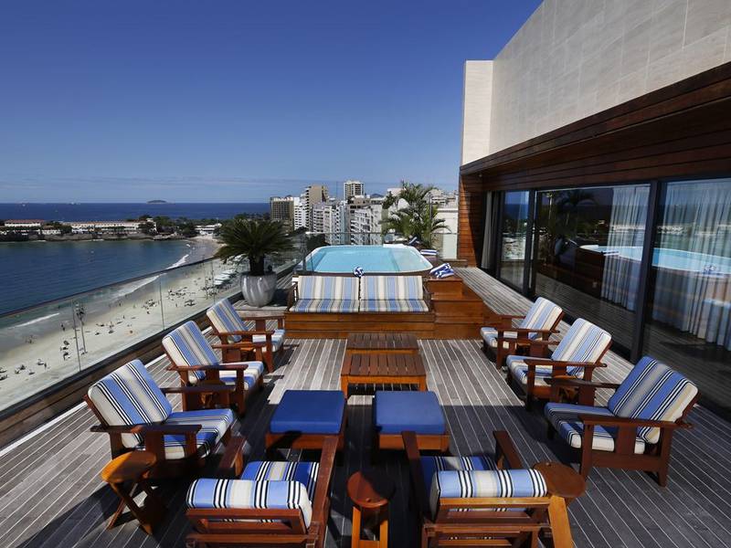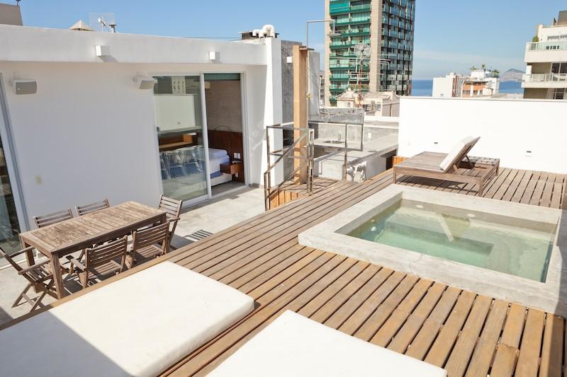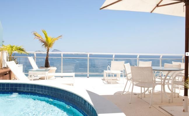 Das Luxus-Penthouse im Stadtteil Copacabana liegt direkt am Meer und bietet Schlafmöglichkeiten für bis zu zehn Personen. Die Wohnung ist mit fünf Schlaf- und drei Badezimmern ausgestattet. Das Wohnzimmer öffnet sich zur Terrasse hin, auf der sich ein Garten mit Palmen und exotischen Pflanzen befindet. Vom Pool schaut man auf den berühmten Strand der Copacabana. Das Penthouse verfügt über Zimmerservice und kostet im Durchschnitt 5'099 Euro pro Nacht, Frühstück inklusive.
