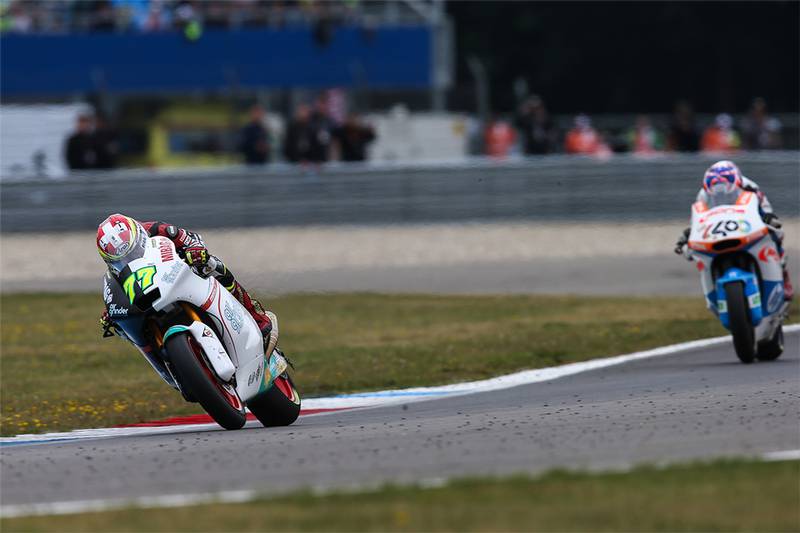 Ständig wechselndes Wetter war auch am Renntag in Assen eine unangenehme Begleiterscheinung. Nach einem heftigen Wolkenbruch am Morgen fand das Warm-Up auf komplett nasser Piste statt. Bis zum Rennstart war es aber wieder trocken. Dominique Aegerter kam vom elften Startplatz gut von der Linie weg und konnte auch schnell zwei Positionen aufholen. Bis zur Rennmitte schien es, dass der 26-Jährige ein weiteres Top-Ten Ergebnis nach Hause bringen würde. Doch die Konkurrenz hatte in der Schlussphase mehr Reserven.