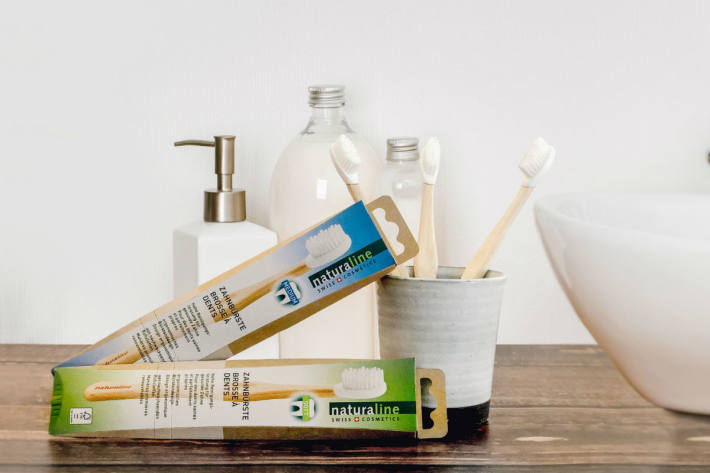 Seit heute findet sich in den meisten Verkaufsstellen die neue Naturaline-Holzzahnbürste aus nachwachsenden Rohstoffen. Der Bürstengriff besteht aus FSC-zertifiziertem Schweizer Buchenholz und der Bürstenkopf aus Bio-Kunststoff. Die Borsten der Zahnbürste wurden aus speziellem Material hergestellt, das auf dem nachwachsenden Rohstoff Rizinus basiert. Nicht zuletzt besteht auch die Verpackung aus rezykliertem Karton.