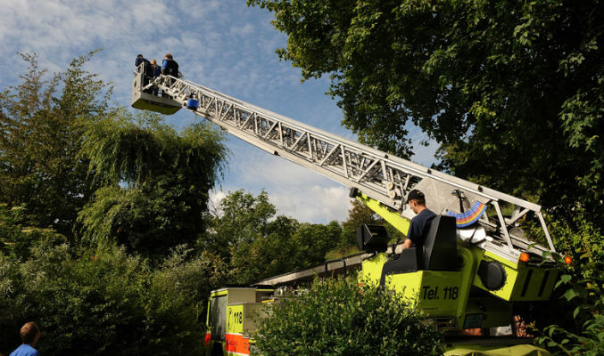 Hilfestellung bei der Beringung hat der Zoo Zürich erneut von Schutz & Rettung Zürich erhalten. Ohne deren Autodrehleiter wären die Jungtiere in ihren zum Teil schwindelerregend hohen Nestern nicht zu erreichen.
