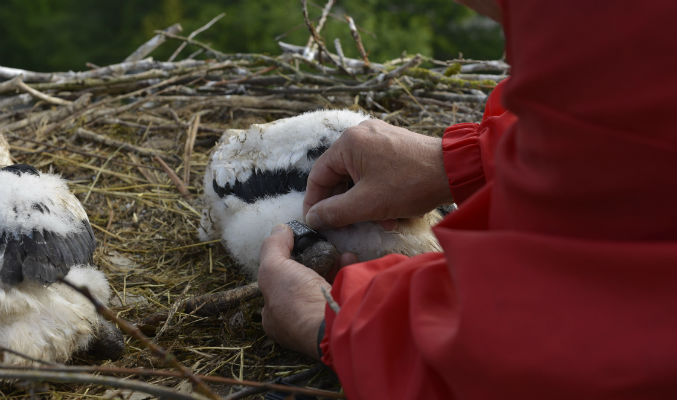 23 Jungstörche hat der Zoo Zürich heute Donnerstag, 8. Juni 2017, mit einem Ring ums Bein markiert. Das sind deutlich mehr als im Vorjahr. 2016 waren aufgrund schwieriger Wetterbedingungen über 20 Jungstörche verendet; nur 8 Tiere hatten damals beringt werden können.