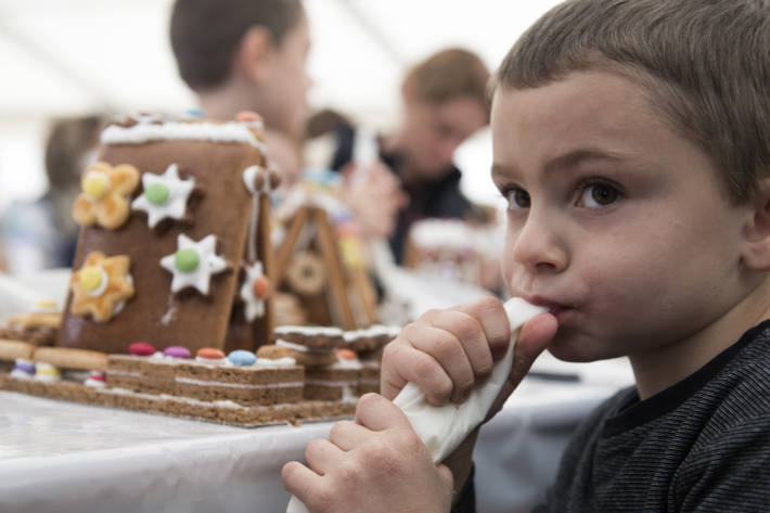 Kinder dekorieren Lebkuchenhäuschen für einen guten Zweck Lebkuchenhäuschen verzieren und dabei sogar Gutes tun? Das ermöglichte gestern das HUG Chnusperhäuschen-Bauen im grossen und zuckersüssen Stil. Am... 13.11.2016 | 09:40