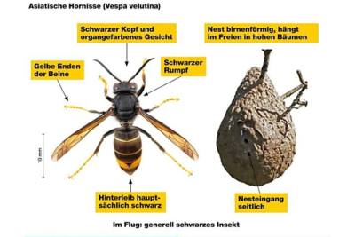Mit steigenden Temperaturen beginnt die Aktivität der Asiatischen Hornisse. Die Bevölkerung wird aufgerufen, frühe Nester zu melden und diese aus Sicherheitsgründen professionell entfernen zu lassen.